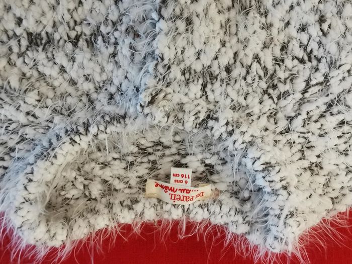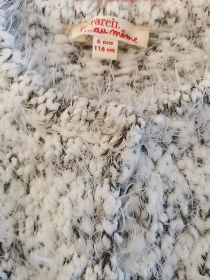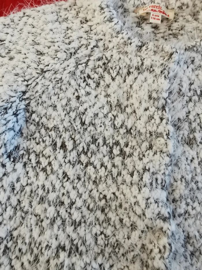 Gilet manches longues noir blanc et gris tout doux avec son bouton de rechange en 6 ans de la marque DPAM en parfait état aucun trou ni tâche (cf voir photos). #bouriquet79fille6ans