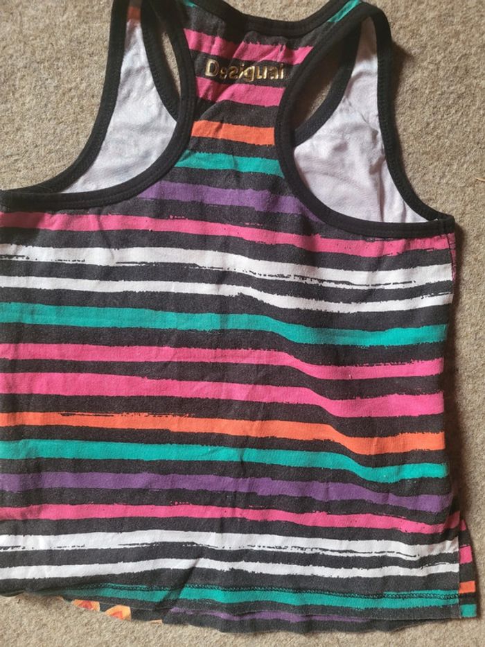 Tee-shirt estival style Marcel. Taille 7/8ans. De marque desigual. Jolies couleurs. Manque quelques strass mais pas du tout gênant. #8anstess #desigual #teeshirt #coloré #8ans