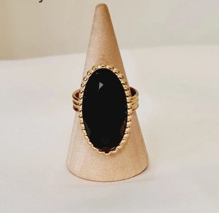 Bague NEUVE ajustable en acier inoxydable couleur dorée et pierre naturelle en onyx Hauteur pierre : 2,5 cm Hypoallergénique, ce bijou résiste à l'eau 💧ne rouille pas ne noircit pas ✅️ Facture jointe à votre achat , vendeur pro ✨️boite cadeau offerte 🎁 Retrouvez le collier assorti dans mon dressing 🥰 Dans le bouddhisme, l'onyx noir est utilisé pour éloigner les mauvaises vibrations. De plus, cette pierre a le pouvoir de renforcer l'intuition, la purification et la guérison. #bijou #doré #bague #ajustable #acierinoxydable #stainlesssteel #gold #onyx #pierrenaturelle