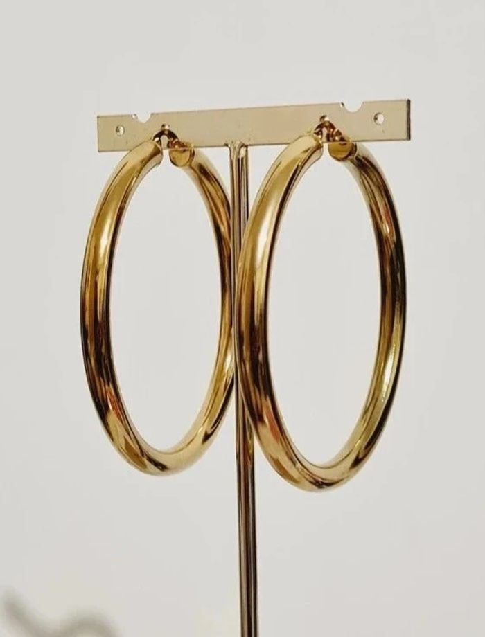 💛Créoles neuves lisses en acier inoxydable couleur or, diamètre intérieur 6 cm, largeur 0.5 cm Poids d'une créole : 14 grammes HYPOALLERGÉNIQUES ✨️sans plomb, nickel ni cadmium ✅️ ne rouillent pas ne noircissent pas, résistent à l'eau 💧🥰 Facture jointe, vendeur pro 🌹 #bijou #doré #acierinoxydable #bouclesdoreilles #créoles #stainlesssteel #gold