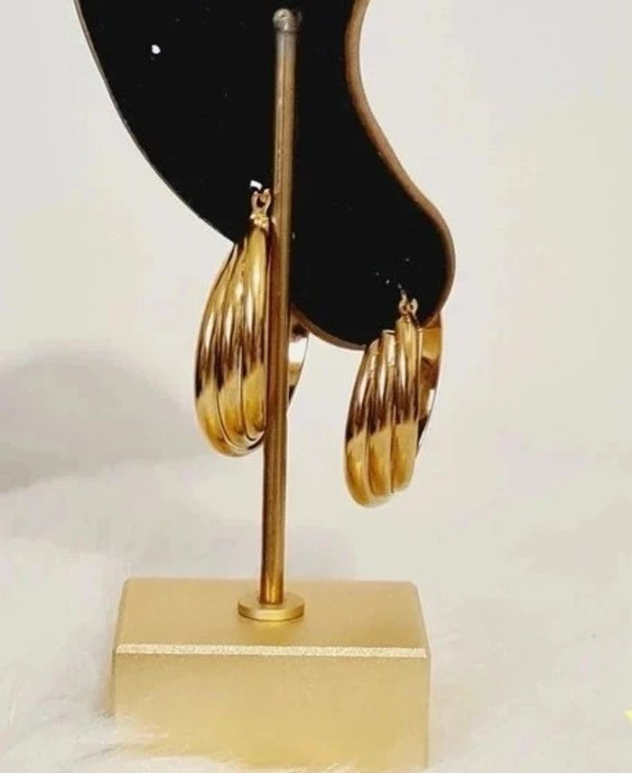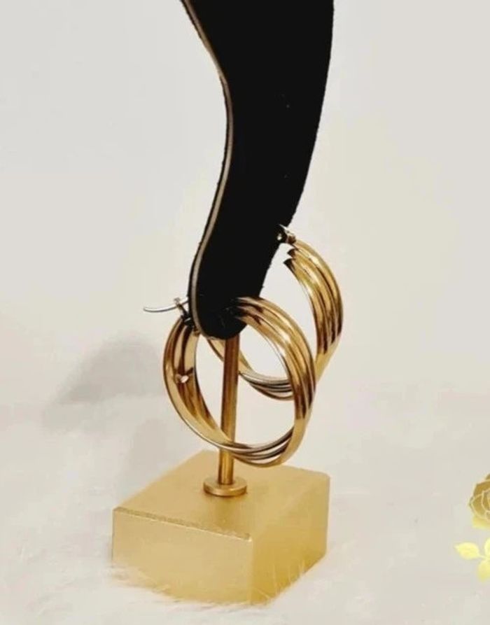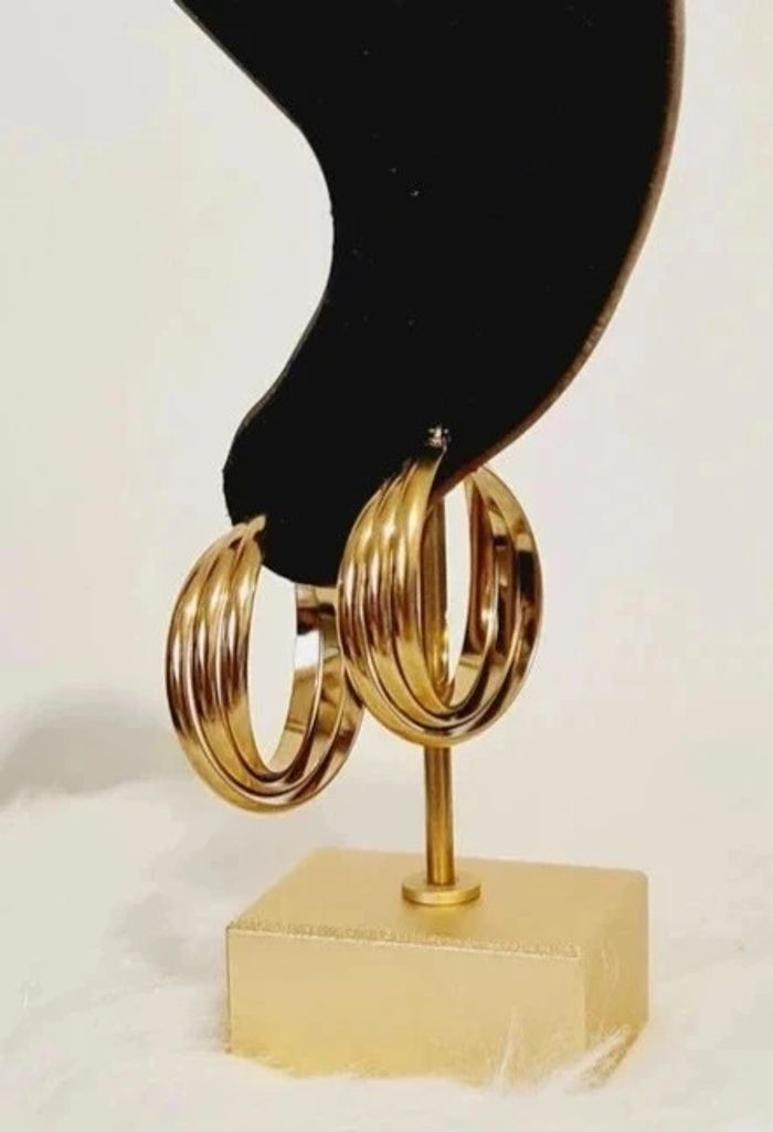 Créoles NEUVES triple cerceaux entrelacés Dimensions : 3 cm × 2,5 cm Poids unitaire : 5 grammes Acier inoxydable couleur or Hypoallergénique, ce bijou résiste à l'eau 💧ne rouille pas ne noircit pas✅️ Facture jointe à votre achat, vendeur pro ✨️pochette cadeau offerte 🎀 #bijou #doré #acierinoxydable #stainlesssteel #boucles #d'oreilles #créoles #bouclesdoreilles #gold #mode #tendance #accessoire #acierinoxydabledoré