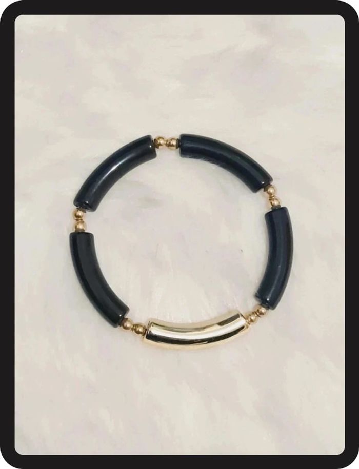 Bracelet neuf tube noir et doré en acrylique et Hématites Taille élastique 19 cm Hypoallergénique, ce bijou résiste à l'eau 💧ne rouille pas ne noircit pas ✅️ Facture jointe, vendeur pro ✨️ #bracelet #acierinoxydable #bijou