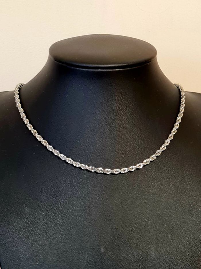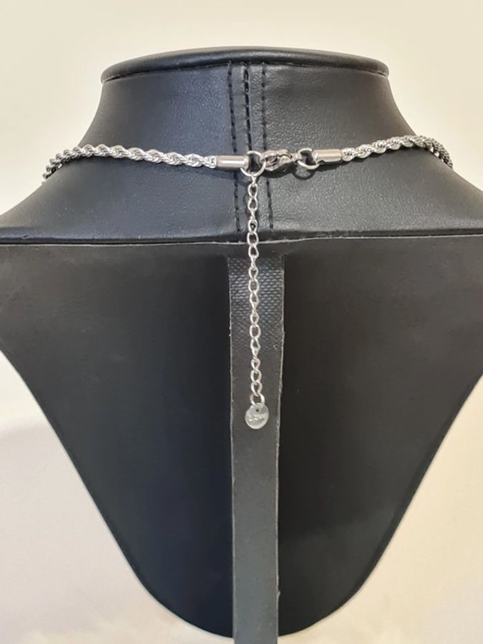 Collier NEUF maille torsadée en acier inoxydable couleur argentée Longueur : 38 cm + 5 cm de chaînette d'extension ajustable Hypoallergénique, ce bijou résiste à l'eau 💦 ne rouille pas ne noircit pas ✅️ Facture jointe à votre achat 🌸 #bijou #bijoux #bijouxfantaisie #bijouxfemme #bijouterie #collier #acierinoxydable #argenté #stainlesssteel