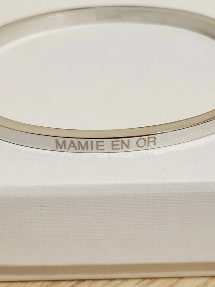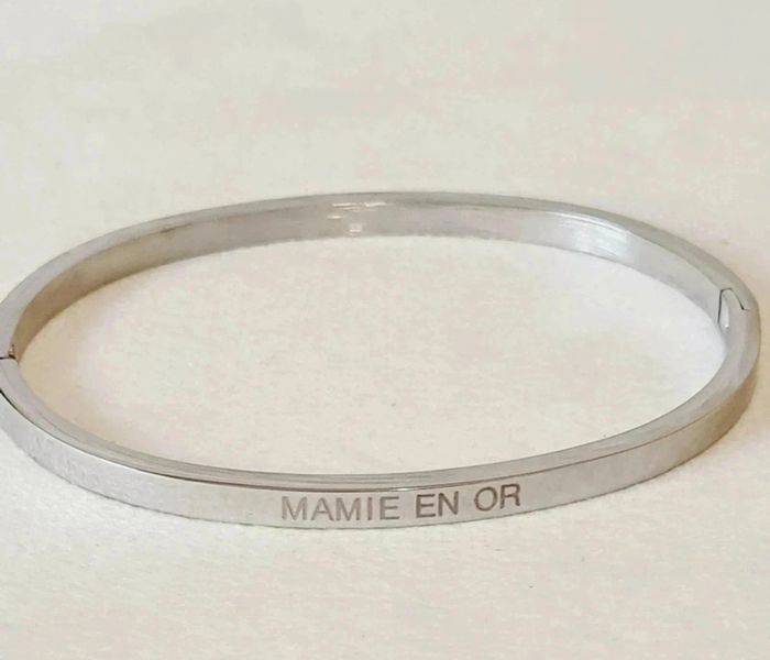 Bracelet jonc ovale NEUF en acier inoxydable / Stainless Stell, très fin, 0,4 mm, ouverture et fermeture sur le côté par clip Gravure "MAMIE EN OR" des 2 cotés et gravure S.Steel à l'intérieur Idéal pour poignet jusqu'à 17 cm max Hypoallergénique, ce bijou résiste à l'eau 💧ne rouille pas ne noircit pas ✅️ Livré dans une pochette organza offerte 🎁 Facture jointe, vendeur pro 🌹 N'hésitez pas à visiter mon dressing, ce bracelet existe aussi en couleur or et or rose🥰 #bracelet #argenté #bijou #acierinoxydable #stainlesssteel