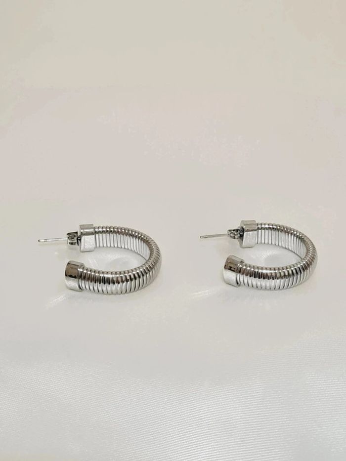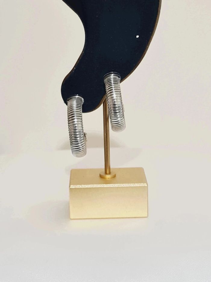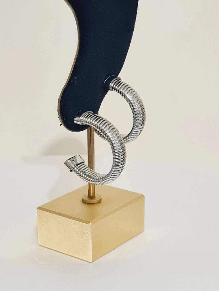 'Boucles d'oreilles créoles NEUVES à maille oméga en acier inoxydable couleur argentée Dimensions : 2,7 x 0,8 cm Hypoallergénique ✨️ ce bijou résiste à l'eau 💧ne rouille pas ne noircit pas ✅️ Facture jointe à votre achat ,vendeur pro 💎💎💎 #bijou #argenté #acierinoxydable #stainlesssteel #argenté #bouclesdoreilles #boucles #créoles