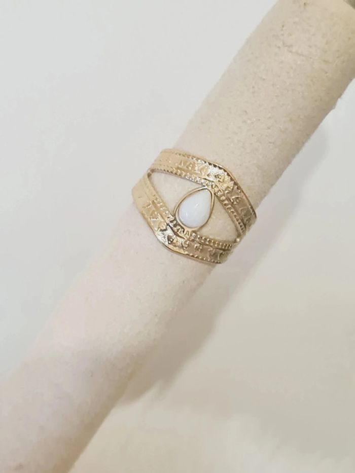 Bague NEUVE ajustable en acier inoxydable couleur dorée et pierre goutte blanche Hauteur : 1,7 cm Pierre : 0,7 cm Hypoallergénique, ce bijou résiste à l'eau 💧ne rouille pas ne noircit pas ✅️ Facture jointe à votre achat , vendeur pro ✨️pochette cadeau offerte 🎁 #bijou #doré #bague #ajustable #acierinoxydable #stainlesssteel #gold