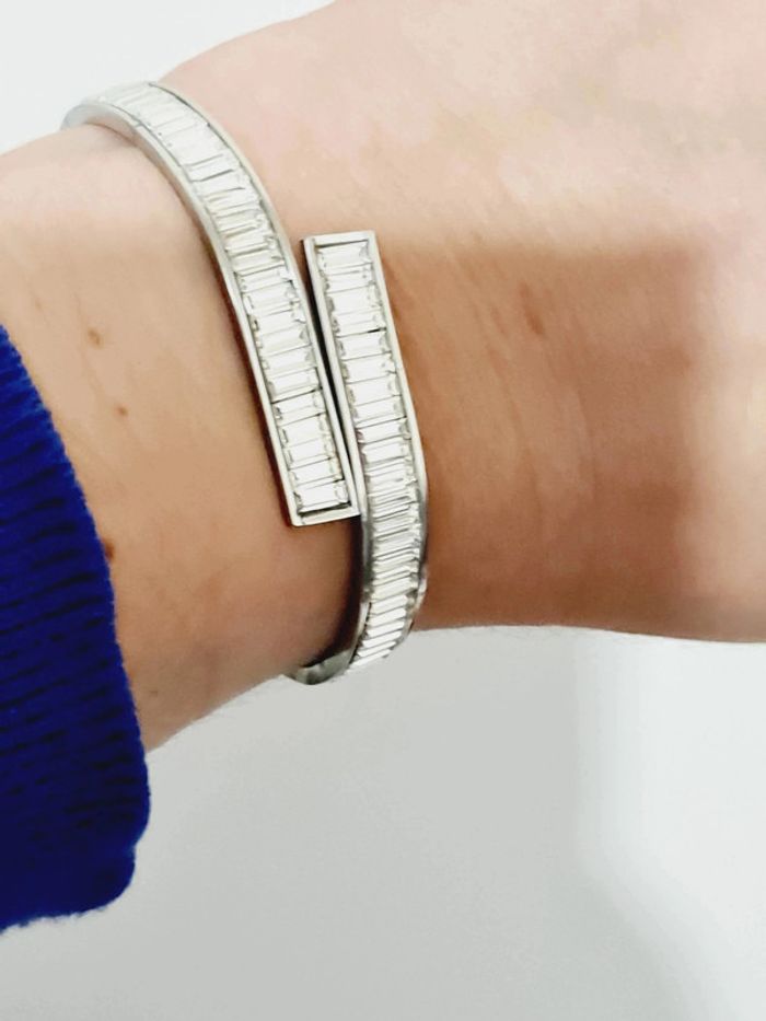 Bracelet NEUF jonc à rivière de strass en acier inoxydable couleur argentée Ouverture par l'avant Convient pour poignet n'excédant pas 16 cm Hauteur : 0,7 cm Hypoallergénique, ne rouille pas ne noircit pas ✅️ qualité top 🇨🇵 sans plomb, nickel ni cadmium ✅️ Facture jointe à votre achat ✨️pochette cadeau offerte 🎀 #bracelet #argenté #acierinoxydable #stainlesssteel #bijou #mode #tendance #accessoires