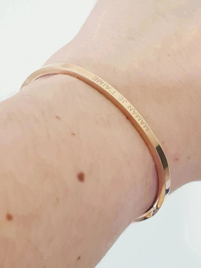 Bracelet NEUF jonc ovale en acier inoxydable / Stainless Stell, ouverture et fermeture sur le côté par clip très fin 0,4 mm Gravure MAMAN JE T'AIME des 2 cotés et gravure S.Steel à l'intérieur Idéal pour poignet jusqu'à 17 cm maximum Hypoallergénique, ce bijou résiste à l'eau 💧ne rouille pas ne noircit pas ✅️ Pochette cadeau offerte 🎁 Facture jointe, vendeur pro 🌹 Retrouvez Le bracelet dans mon dressing en couleur dorée et argentée #fêtesdesmères #bijou #bijoux #doré #bracelet #acierinoxydable #stainlesssteel #mode #tendance #accessoire