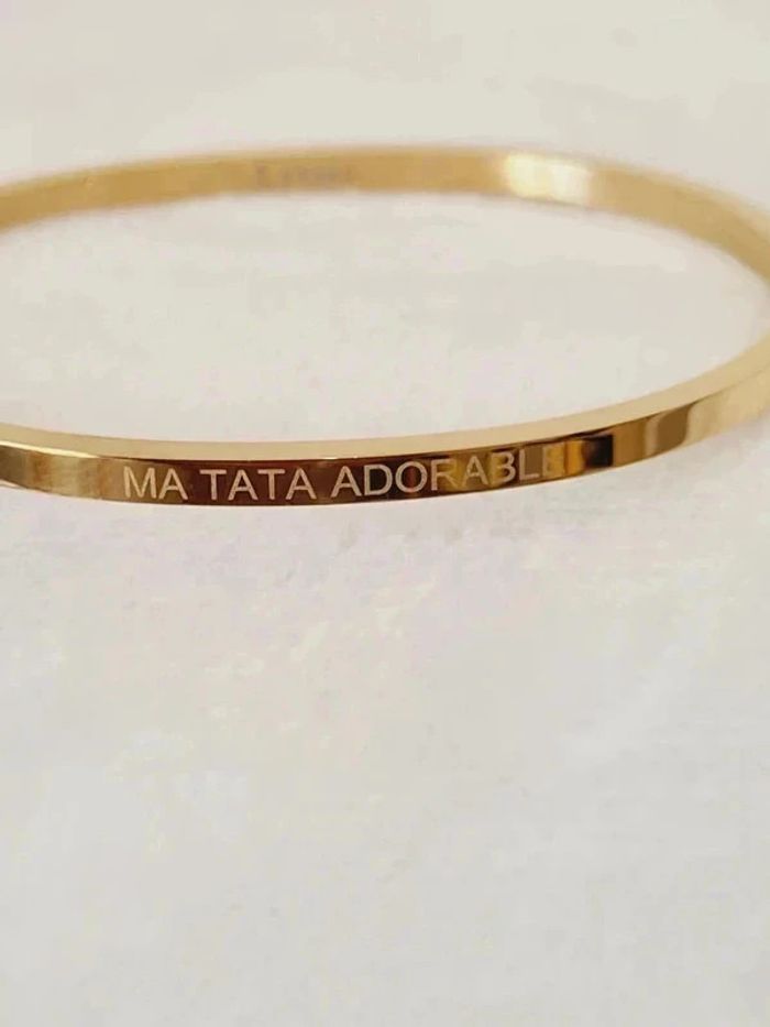 Bracelet NEUF jonc ovale en acier inoxydable / Stainless Stell, ouverture et fermeture sur le côté par clip très fin 0,4 mm Gravure MA TATA ADORABLE des 2 cotés et gravure S.Steel à l'intérieur Idéal pour poignet jusqu'à 17 cm maximum Hypoallergénique, ce bijou résiste à l'eau 💧ne rouille pas ne noircit pas ✅️ Pochette organza offerte 🎁 Facture jointe, vendeur pro 🌹 #bijou #bijoux #doré #bracelet #acierinoxydable #stainlesssteel #mode #tendance #accessoire
