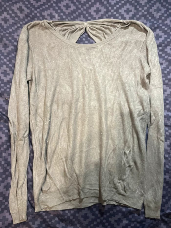 Pull taupe pailleté à noeud Lady Blush Taille 40 État correct #nawelb430_tailleL