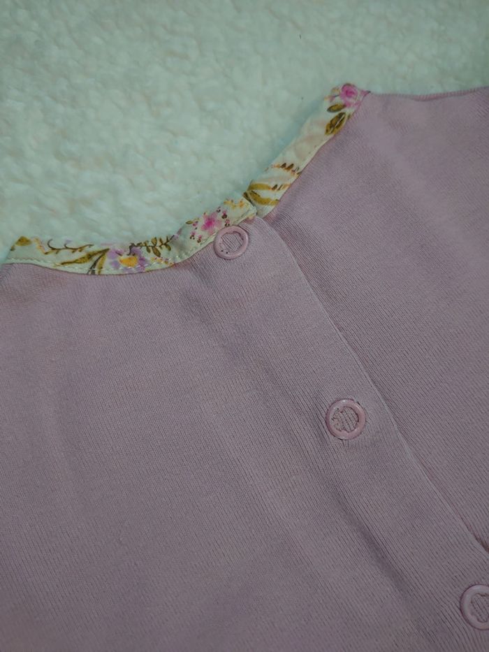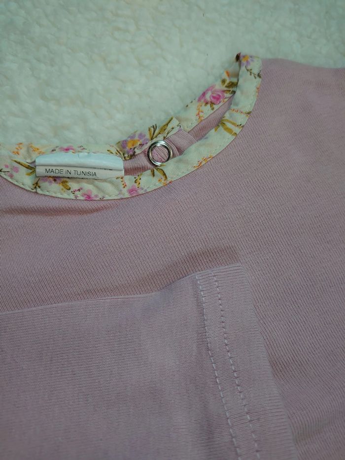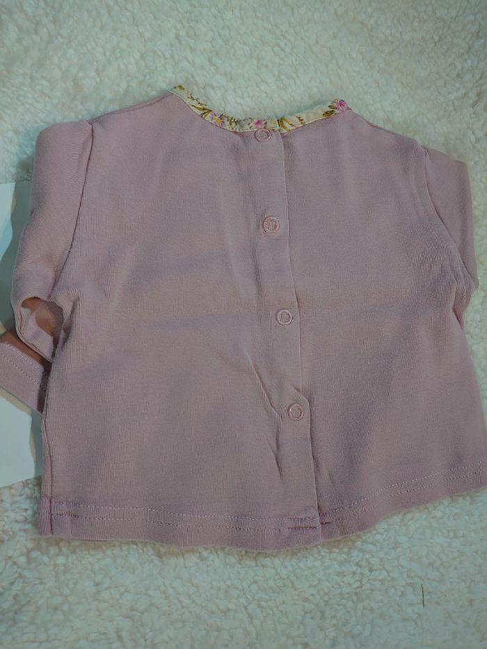 tee shirt rose avec col tissus fleuri manche longue, très bon état, 6 mois #stephfredmaelynnebébé6mois