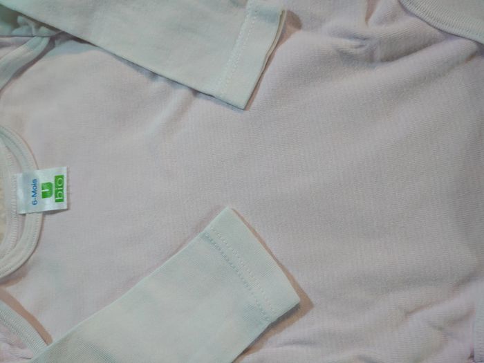 bodies manche longue, très bon état, 6 mois, le rose à col est de la marque obaïb et celui à rayure est de la marque U bio. #stephfredmaelynnebébé6mois