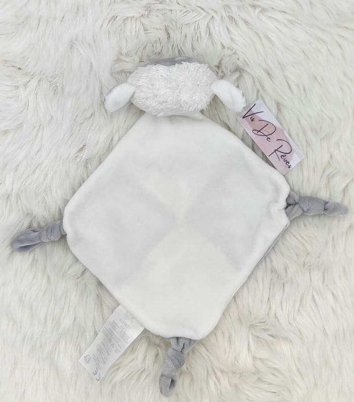 Doudou plat losange Mouton Tom et Kiddy blanc gris rayé - photo numéro 3
