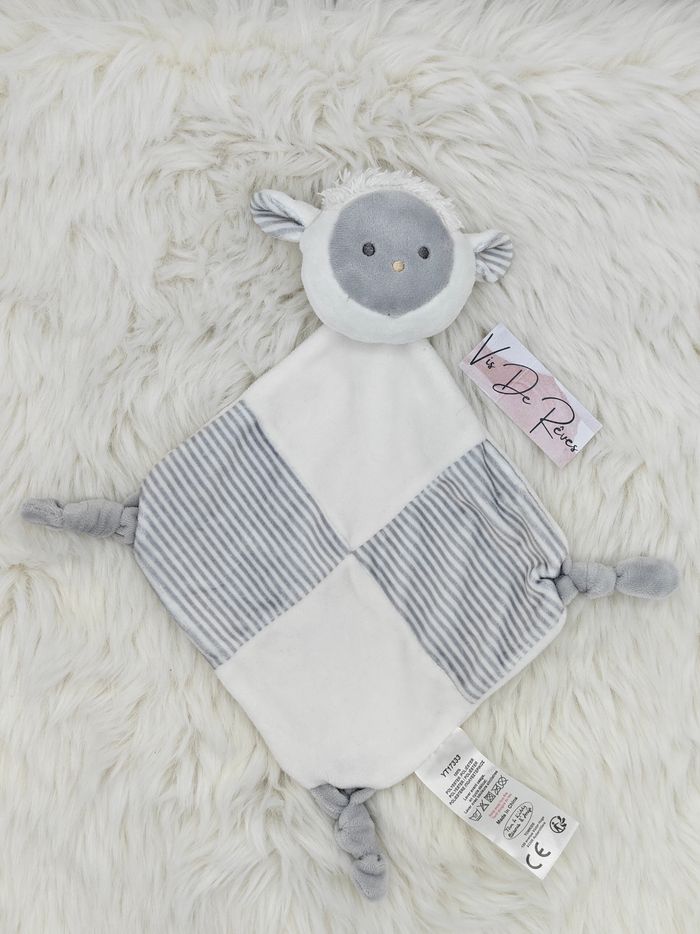 Doudou plat losange Mouton Tom et Kiddy blanc gris rayé - photo numéro 1