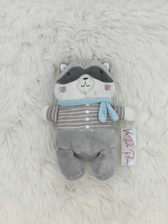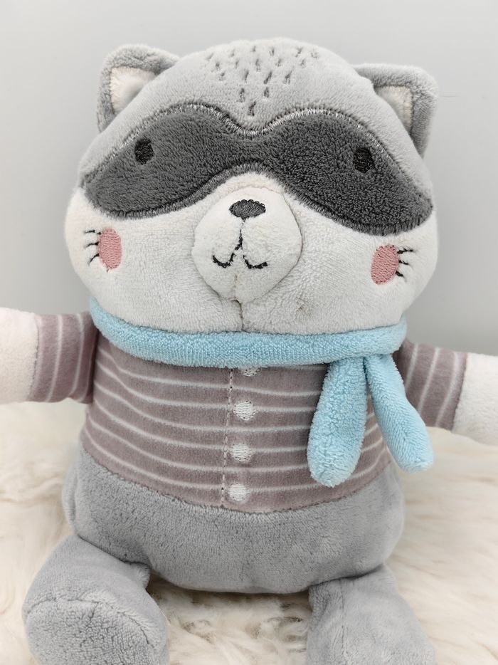 Doudou Peluche raton-laveur gris, blanc et Bleu Mots d'enfants E. Leclerc - photo numéro 1
