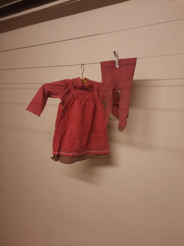 Bonjour je vends cet ensemble constitué d'une robe taille 18 mois, d'un tee shirt col montant taille 12 mois et d'une paire de collants taille 17/18 en excellent état.