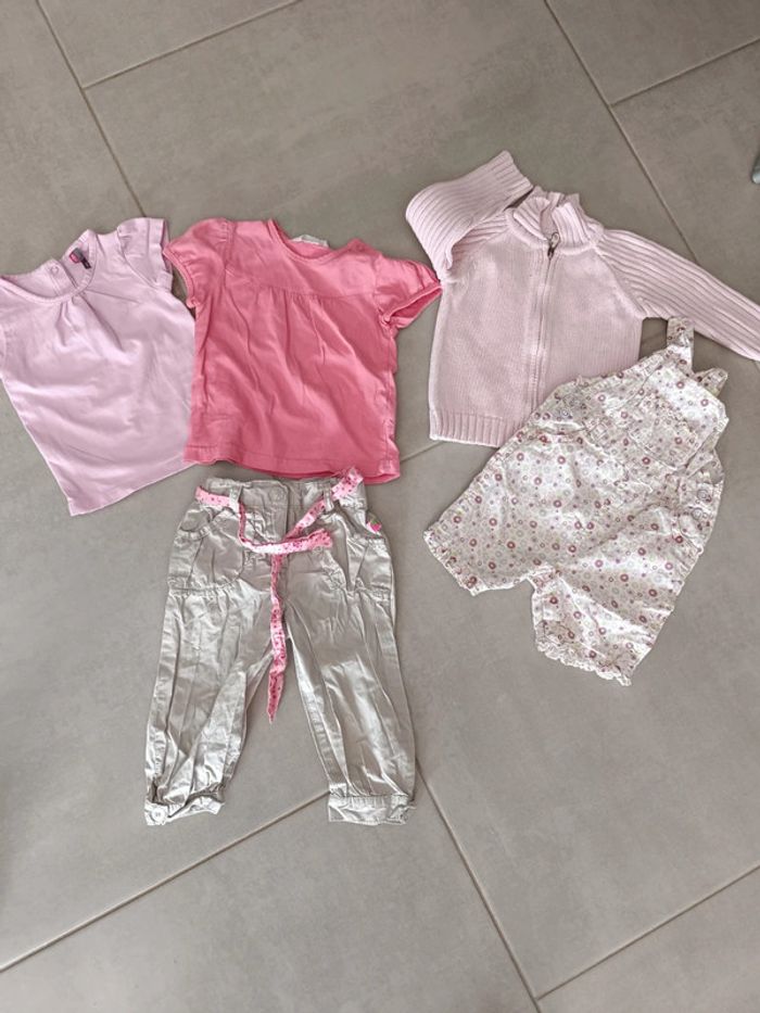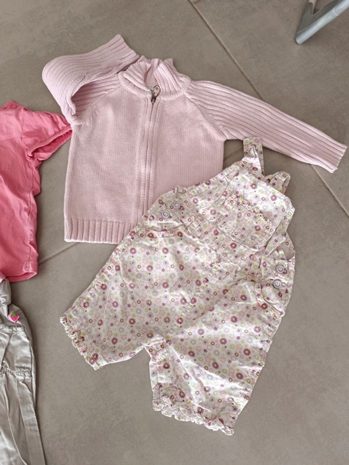 1 salopette 1 pantalon fin 2 t-shirt et 1 gilet Diverses marques #lola12m