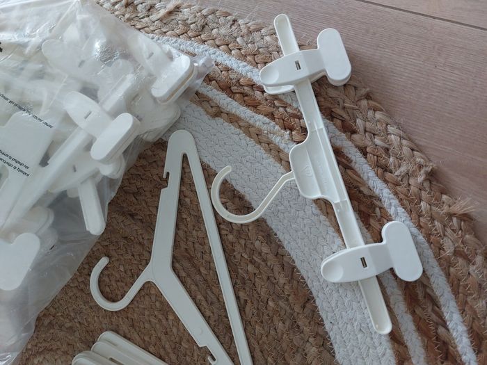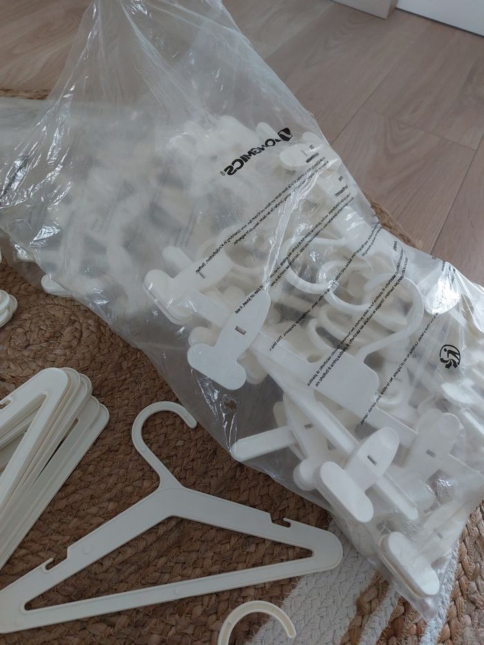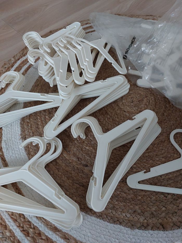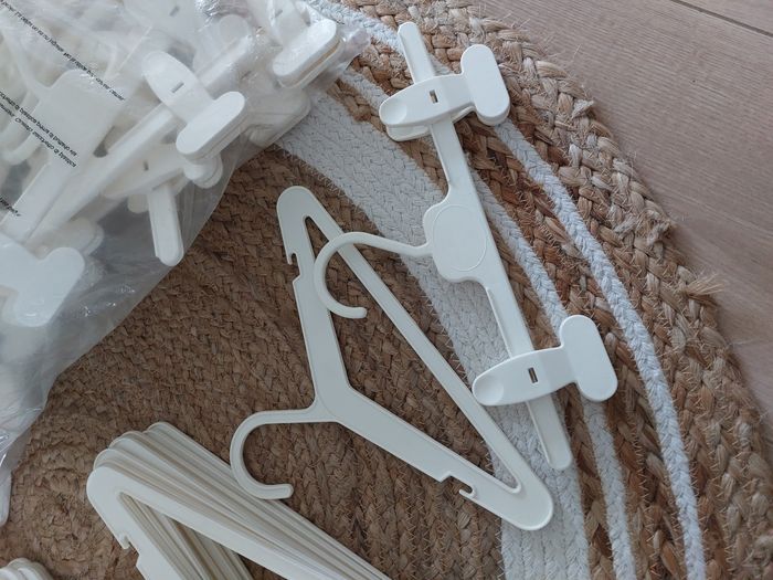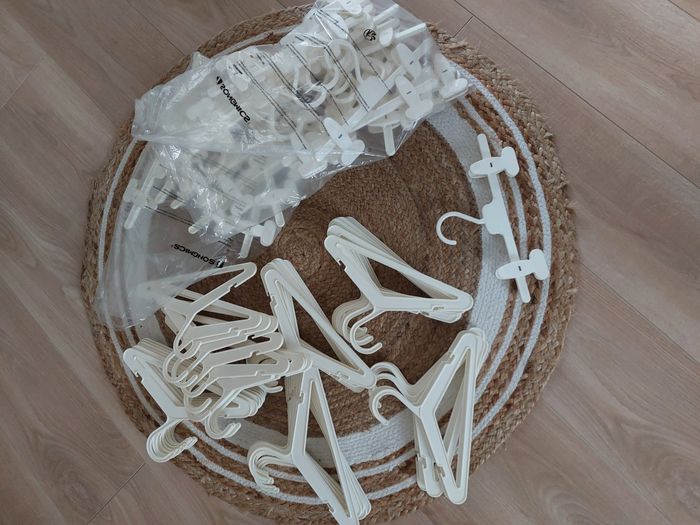 Vends cintres pour vêtements enfant. 85 cintres haut 25 cintres pantalon Couleur : Blanc Très bon état.