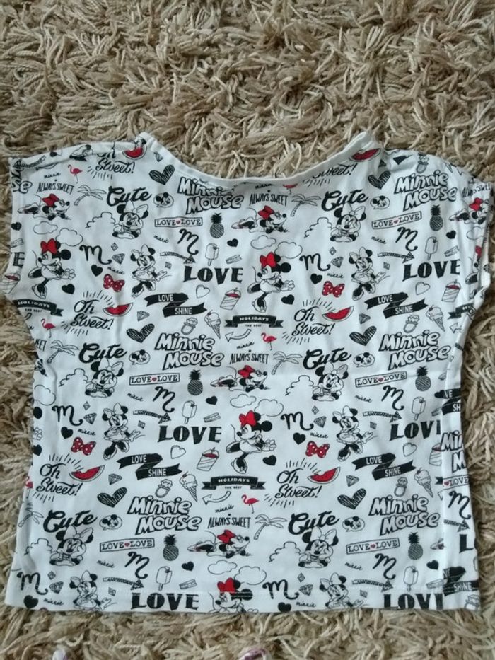 Tshirt Disney minnie, taille 4 ans, en bon état, il n'y a pas de trous.il y a une micro tâche voir photo ( entre les dessins: la boisson et le pied de minnie) #celine59160fille4ans