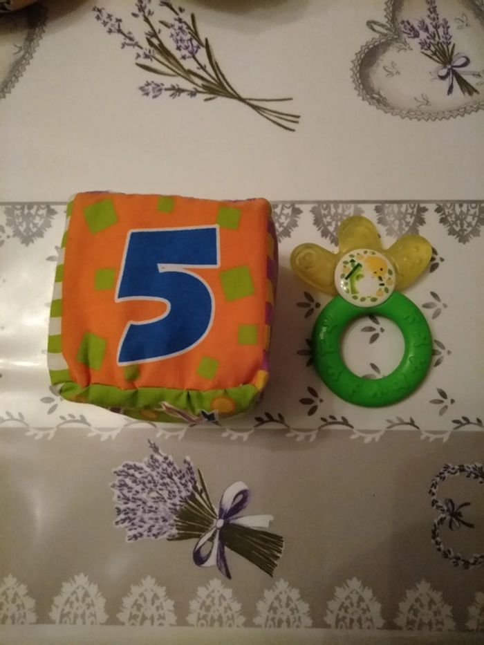 Cube en mousse + anneau dentition, en bon état.