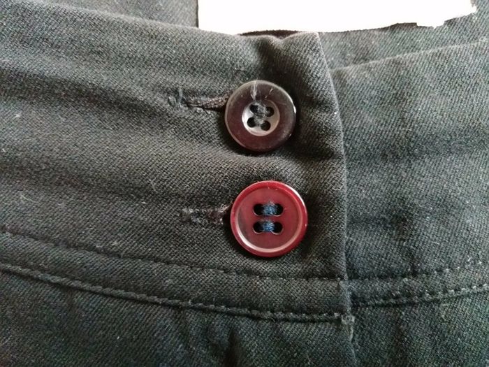 Pantalon noir, taille 42, il n'y a ni tâches ni trous, la fermeture éclaire fonctionne. Le deuxième bouton n'est pas d'origine, à cause du flash sur les photos il parait plus clair alors qu'il est bordeau noir. #celine59160femme42