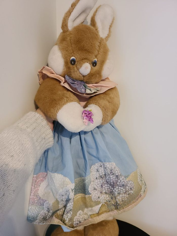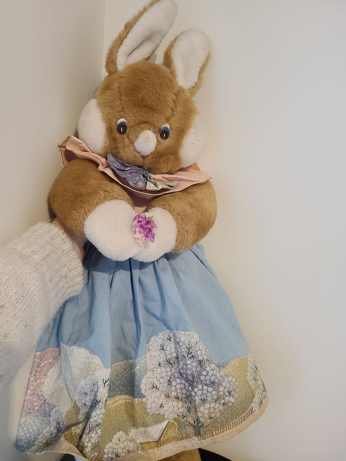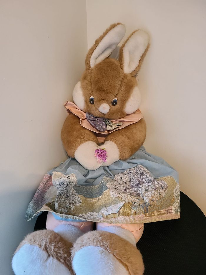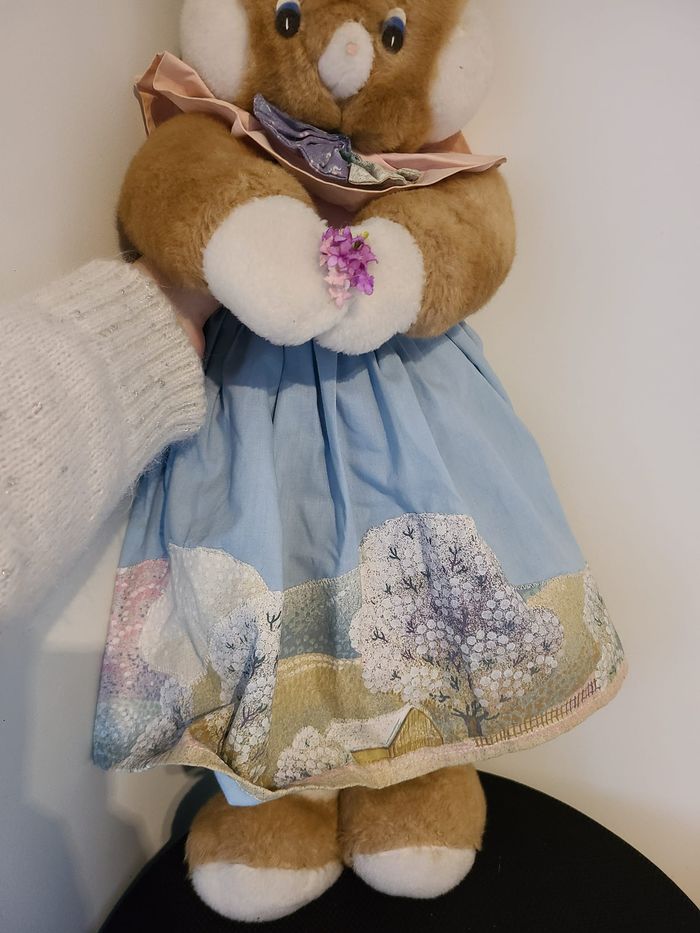 COLLECTOR ANCIEN PELUCHE DOUDOU LAPIN ROBE PIMPRENELLE VINTAGE 124