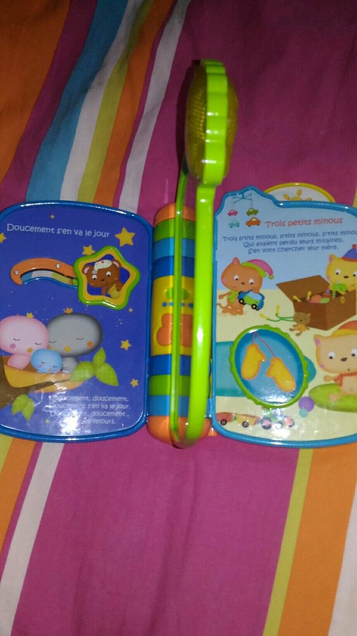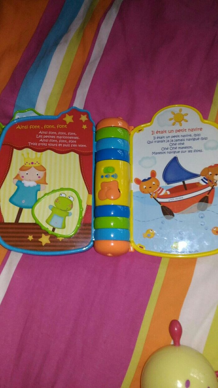vtech Baby Mon super livre enchanté bleu La lumière clignote en rythme avec les sons. Plusieures chansons, mélodies, sons et phraseS 7 pages interactives avec des formes à faire tourner ou glisser. Apprentissage : Différentes comptines Motricité fine 6-36 mois 18€ pièce dispo également en rose