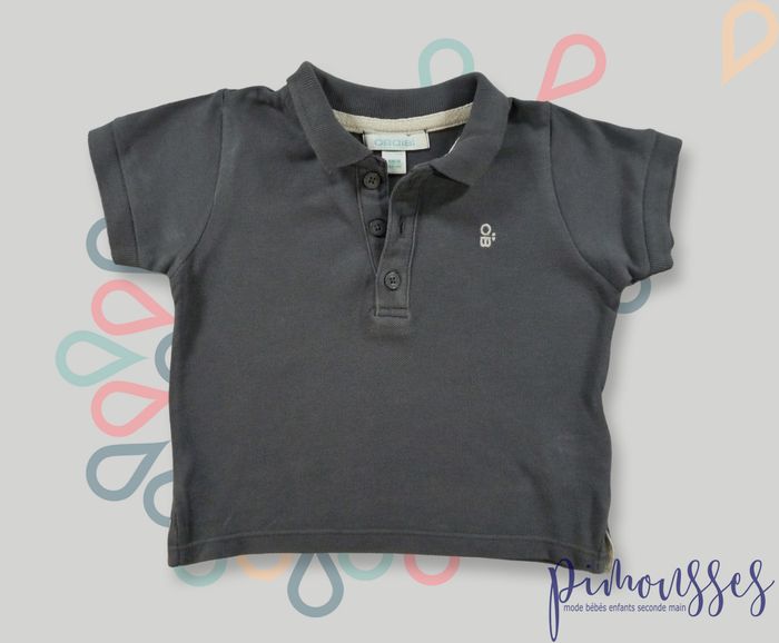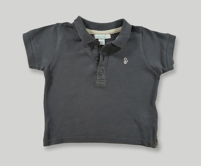 Tee-shirt polo manches courtes jersey piqué gris blanc Obaïbi 6 mois 68 cm garçon