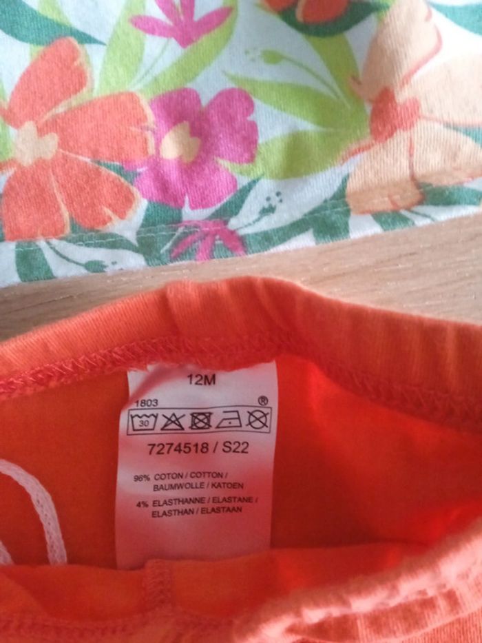 Ensemble robe et legging Couleur : orange pour le legging et multicolore pour la robe Taille: 12 mois Neuf j'aimais pour il manque juste l'étiquette