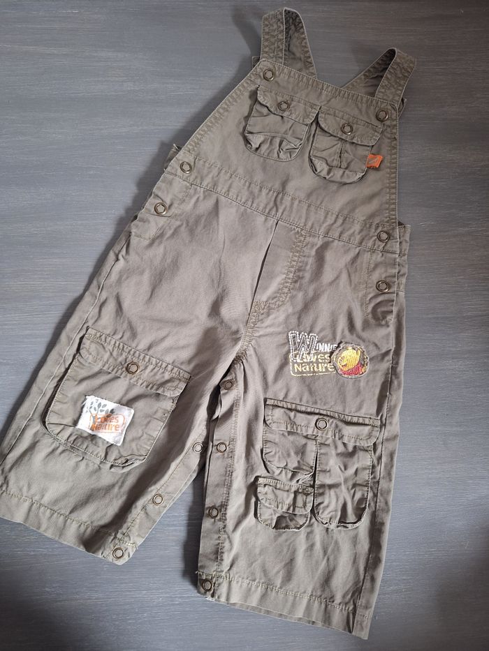 GARÇON 12 MOIS N°827 salopette été Winni l ourson Kaki, 100% coton Pression entre jambes Taille 12 mois Disney 4,50€ #kelly_garçon12mois