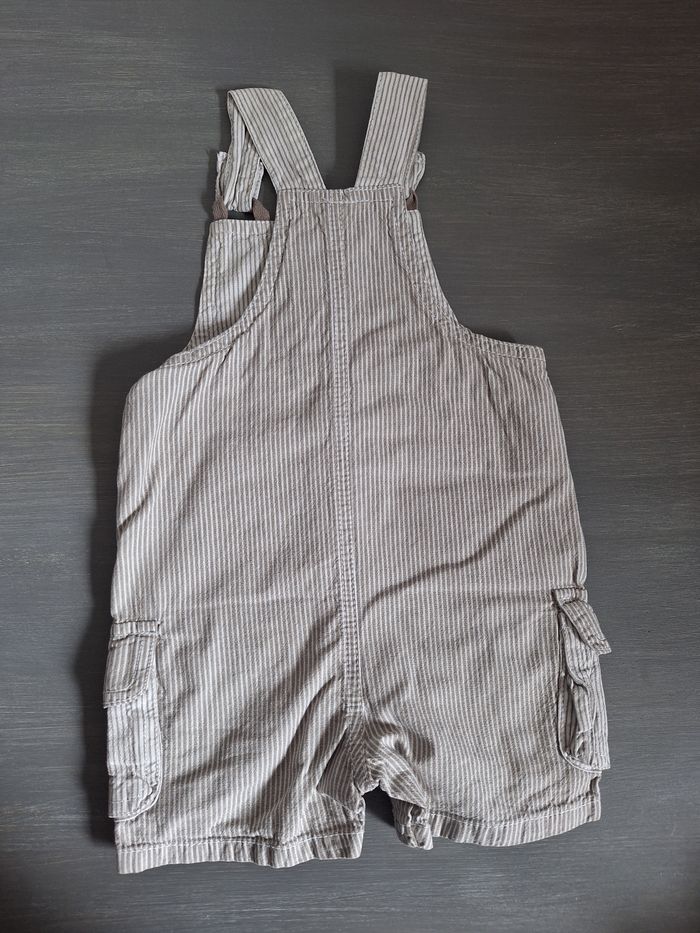 GARÇON 12 MOIS N°829 salopette short Rayé, beige/ taupe 100% coton Pression entre jambes Taille 12 mois 2,50€ #kelly_garçon12mois