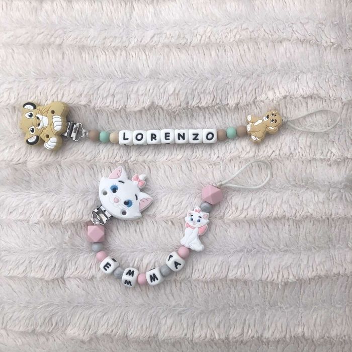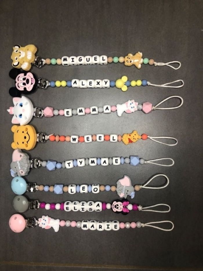 Attache tétine en silicone Clip et perle en silicone Entièrement personnalisable (ajout de perle entre les lettres....) Respecte les normes de sécurité