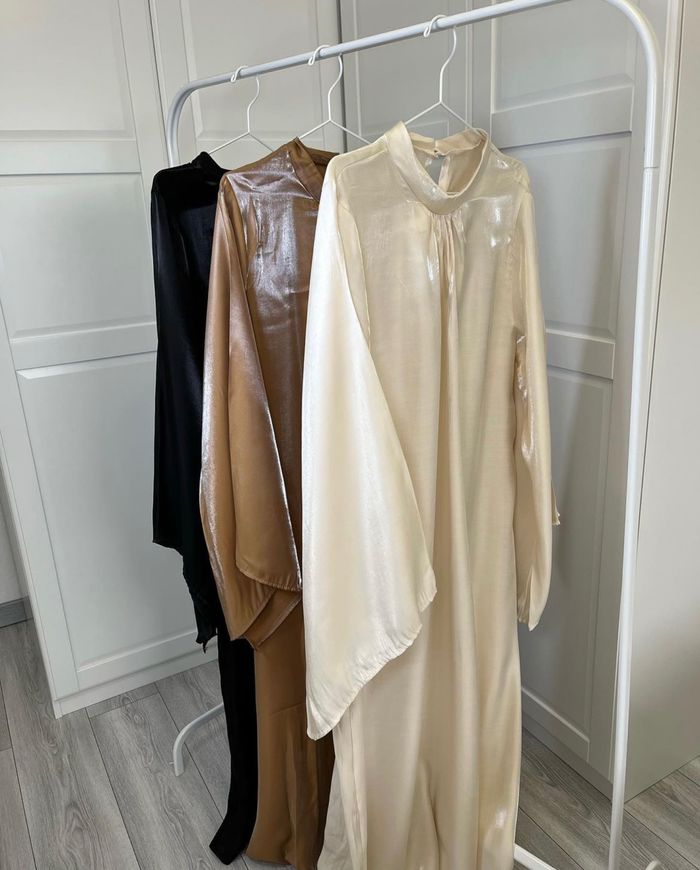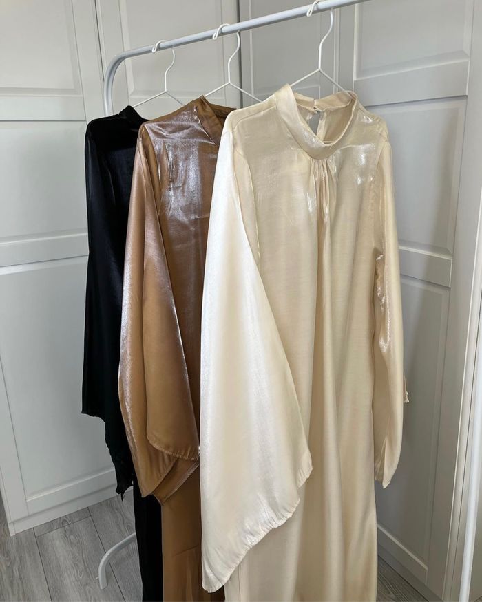 🕊️ Abaya plume satinée (‼️ ne pas acheter l'annonce, précommandes uniquement par msg) • Taille unique • Disponible en crème, marron clair et noir