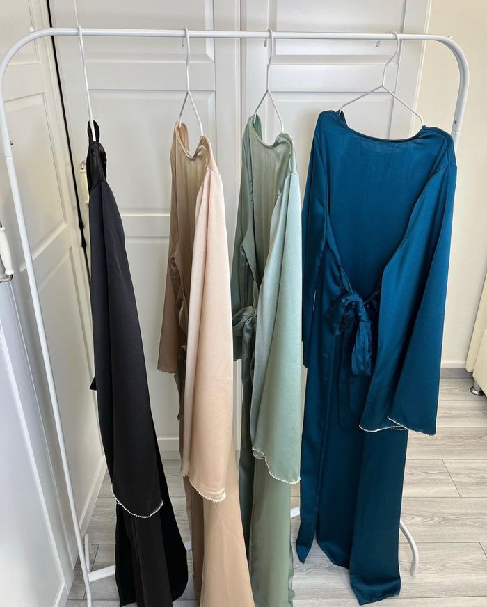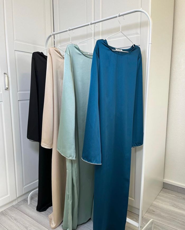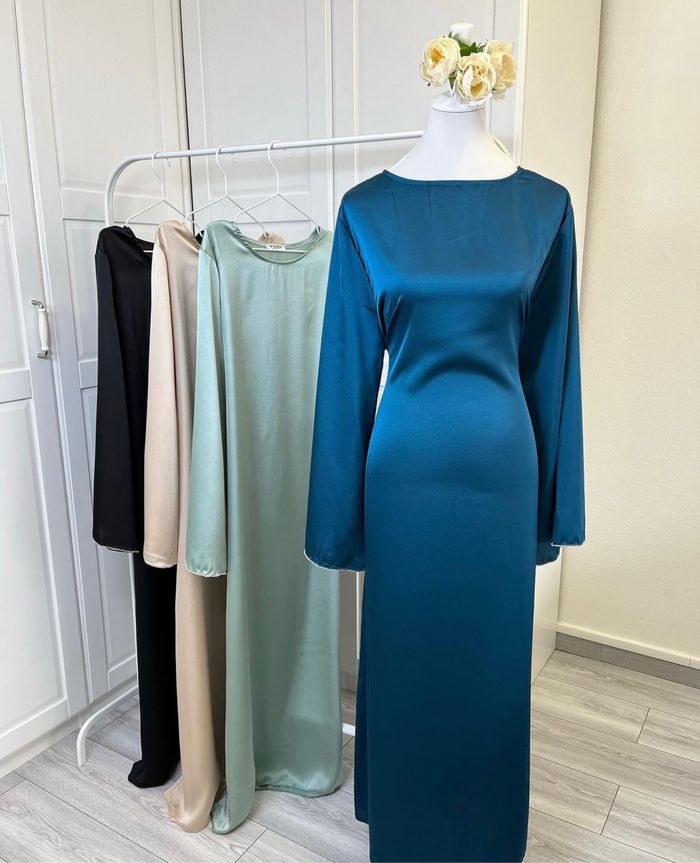 🕊️ Robe perle satinée (‼️ ne pas acheter l'annonce, précommandes uniquement par msg) • Taille unique • Peut se porter cintrée ou large • Disponible en bleu marine, vert d'eau, beige et noir