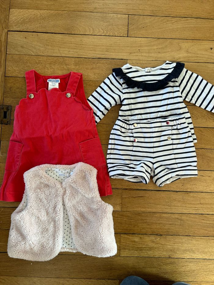 Lot vêtements fille 18 mois 🌻 robe rouge jacadi légèrement usée voir photo 🌻 gilet sans manche bout’chou 🌻 ensemble haut short jacadi parfait état