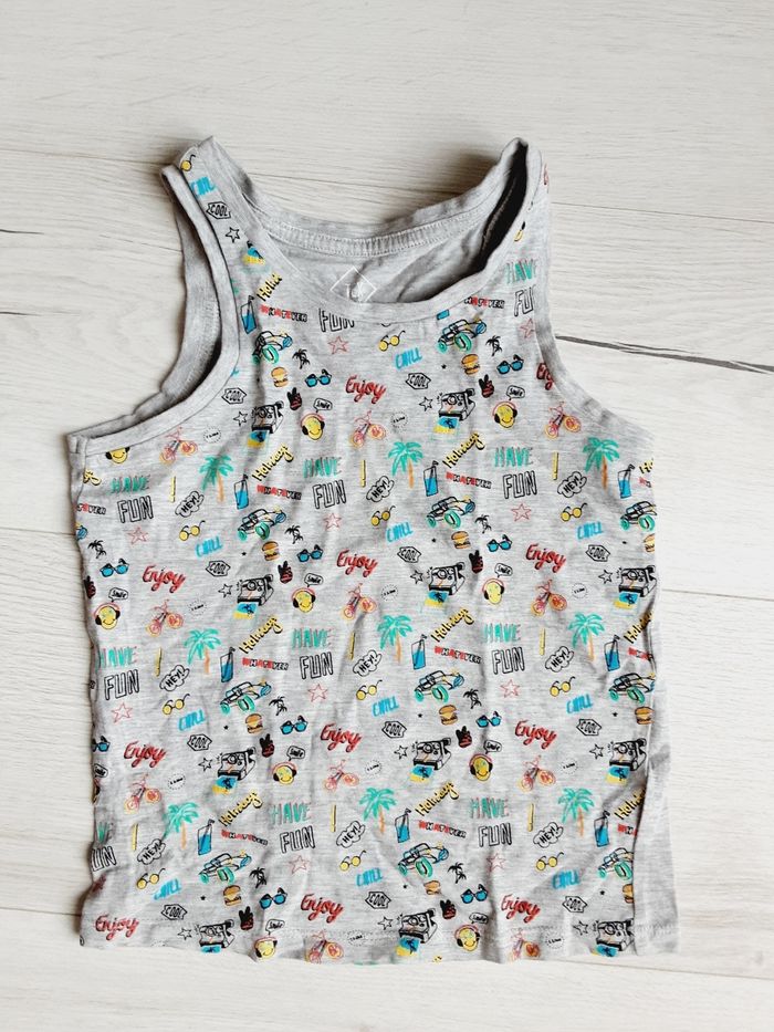 Vêtement garçon tee-shirt débardeur gris émoji Tex 4 ans
