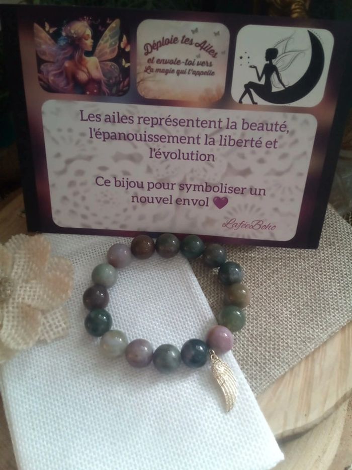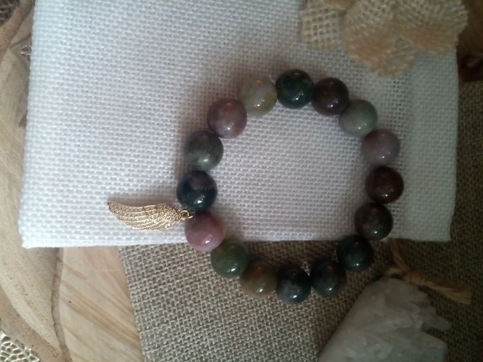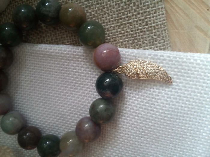 Bracelet en perles agate indienne et ailé avec zircon - photo numéro 1