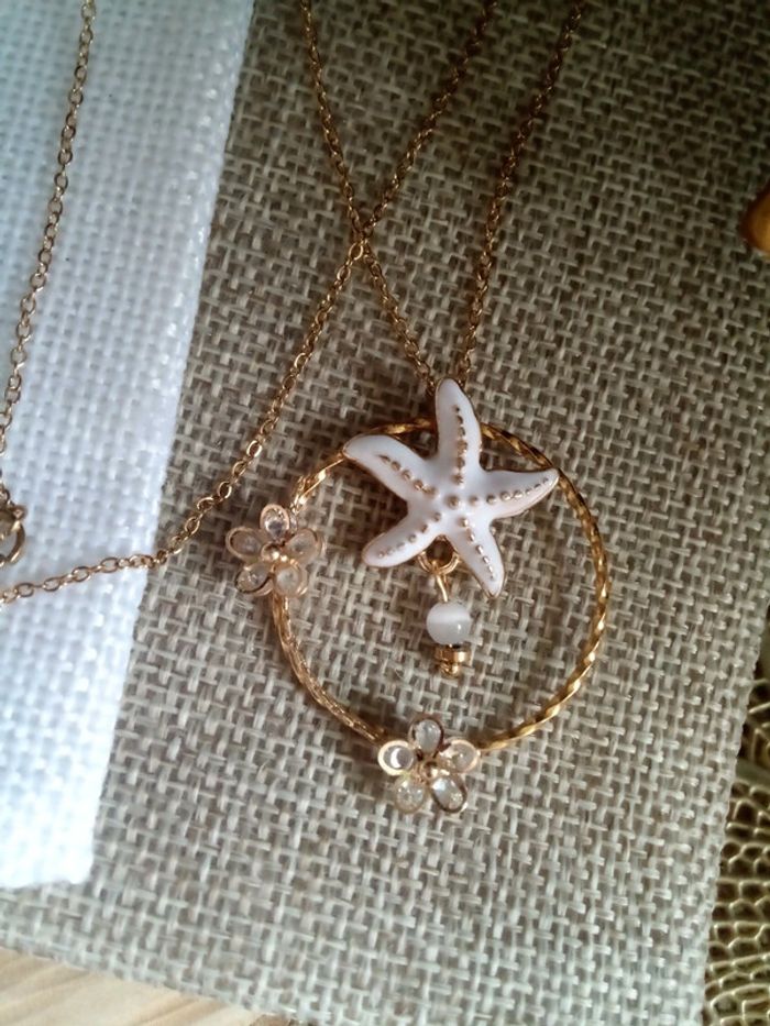 Collier étoile de mer et anneau fleuri - photo numéro 1