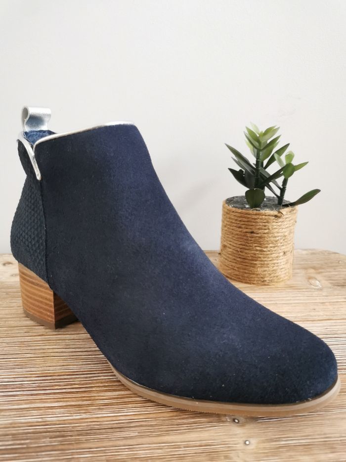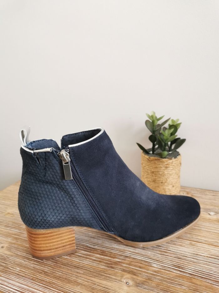 Bottines bleu marine bi-matières en cuir Damart Pointure 38