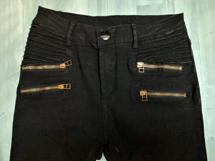 Jegging skinny noir zips dorés taille 38/40 - photo numéro 3