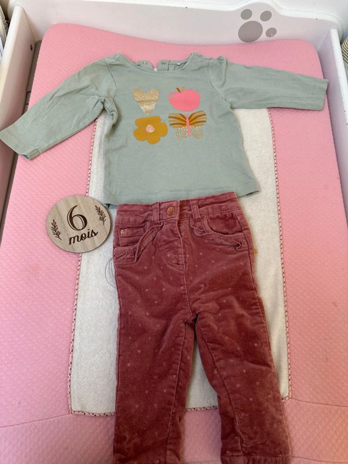 Ensemble 6 mois , pantalon jamais porté , haut une fois