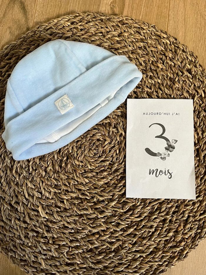 Bonnet bébé comme neuf car juste lave jamais porté Taille 3 mois Petit bateau