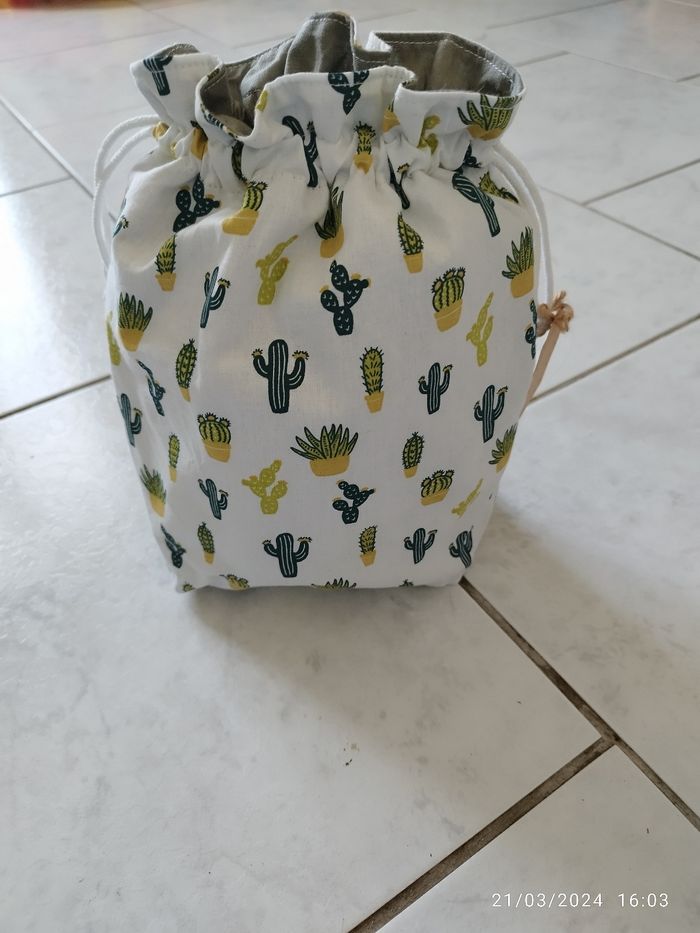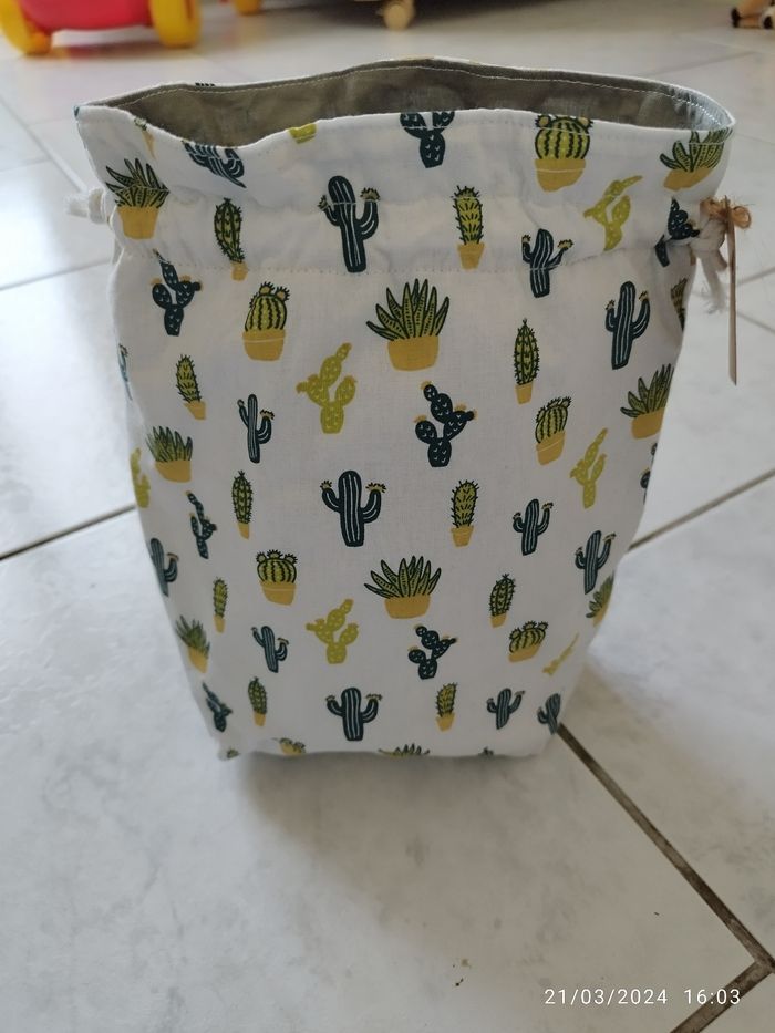 Vends panier de rangement avec poches et petit sac avec cordon idéal pour les produits d' hygiène, maquillage ou encore emballage cadeau.