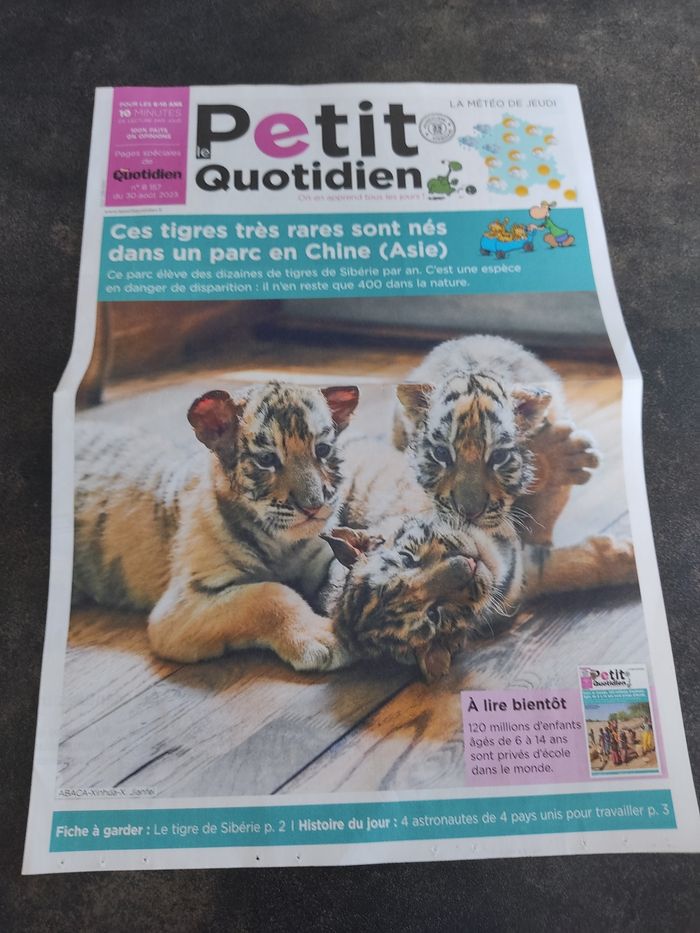 Journal petit Quotidien sur le tigre. Numéro 8157 du 30 août 2023. Pour les 6/10 ans