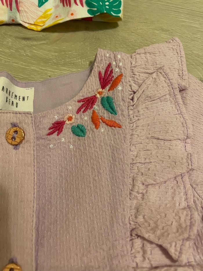 Ensemble robe été lilas brodée et bandeau assorti thème tropical carrément beau 6 mois