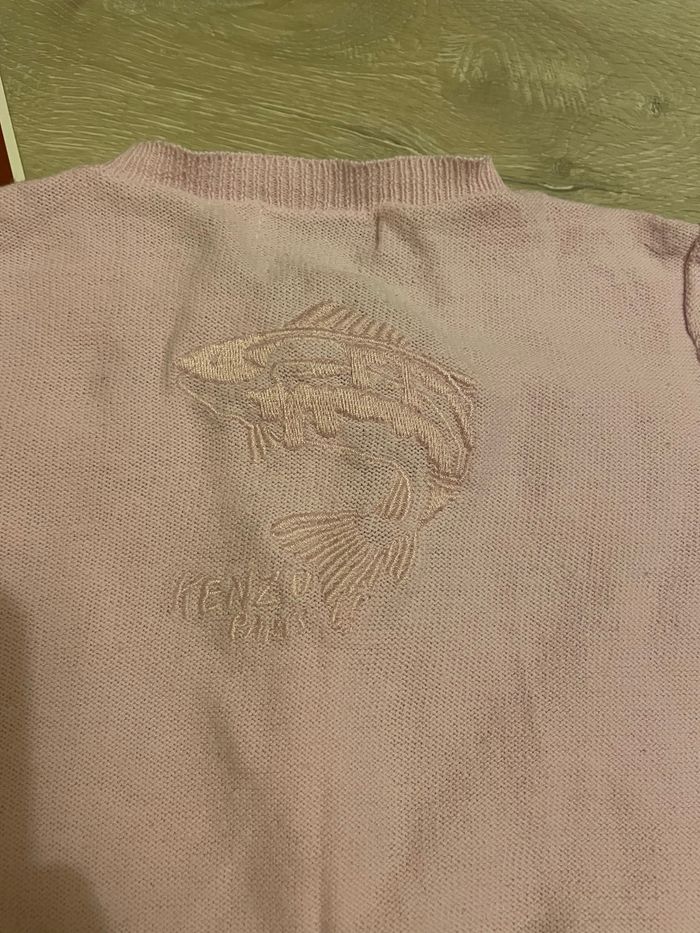 Gilet / cardigan, parme / lilas, avec broderie motif poisson, Kenzo, 6 mois
