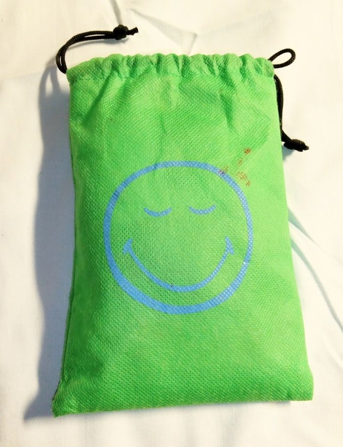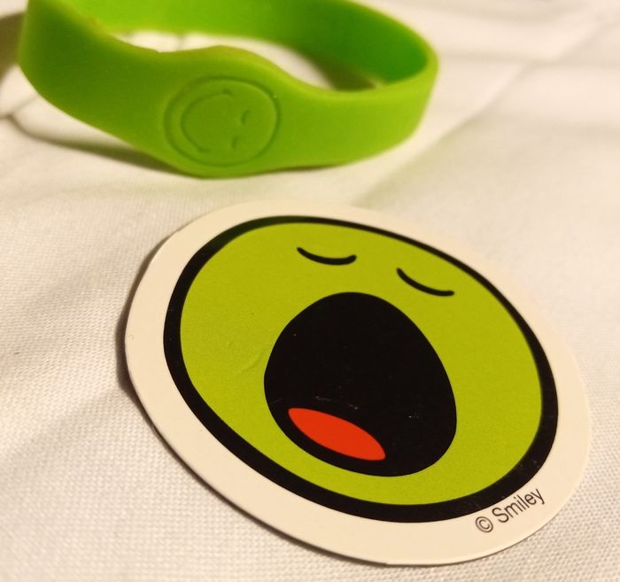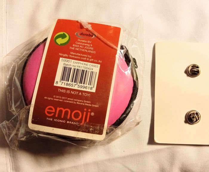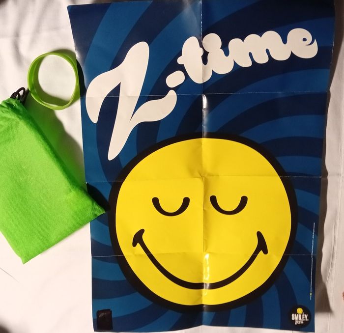 Tout est neuf: - 1 petite boite rigide Emojis ( pour ranger de petits objets, colle des écouteurs...) - 1 bracelet - 2 pin's - Des autocollants - des cartes - 1 poster - 1 magnet - 1 pochette verte ( 1 petite trace de rouge à l'avant)