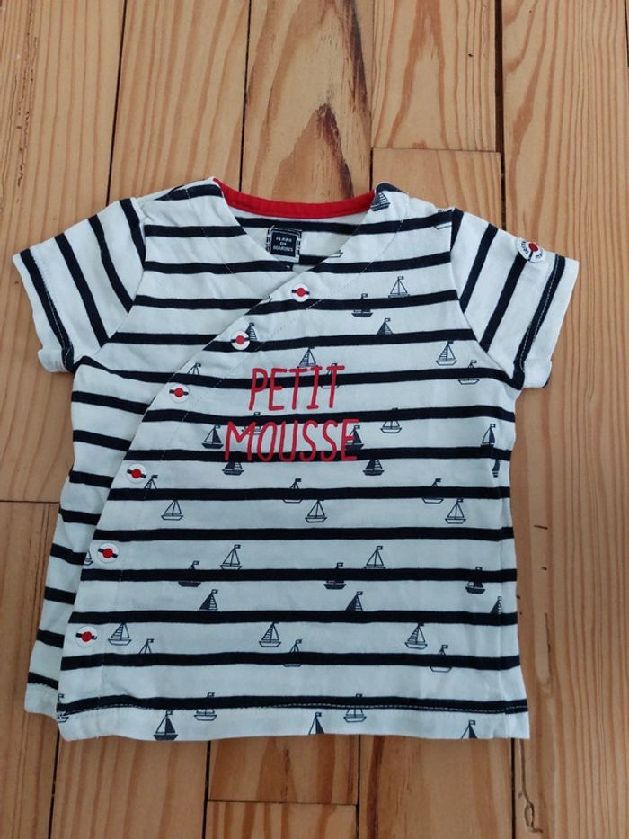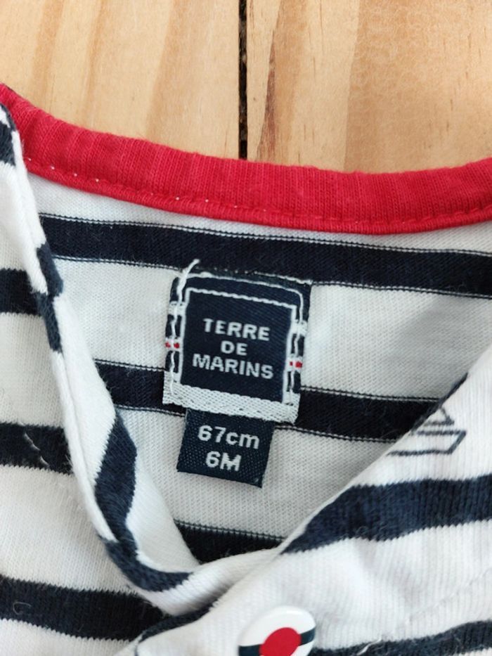 T-shirt manches courtes marque " Terre de Marins" Pratique car s'ouvre entièrement sur le devant par système de pression Taille 6mois