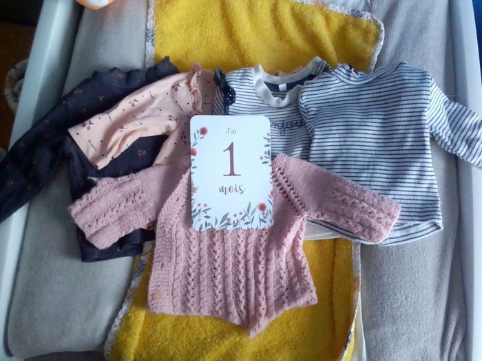Pulls filles 1 mois Peu portés Attention le gilet est un tricoté main