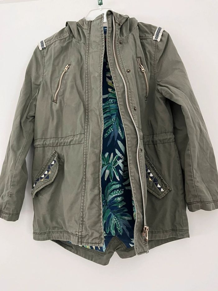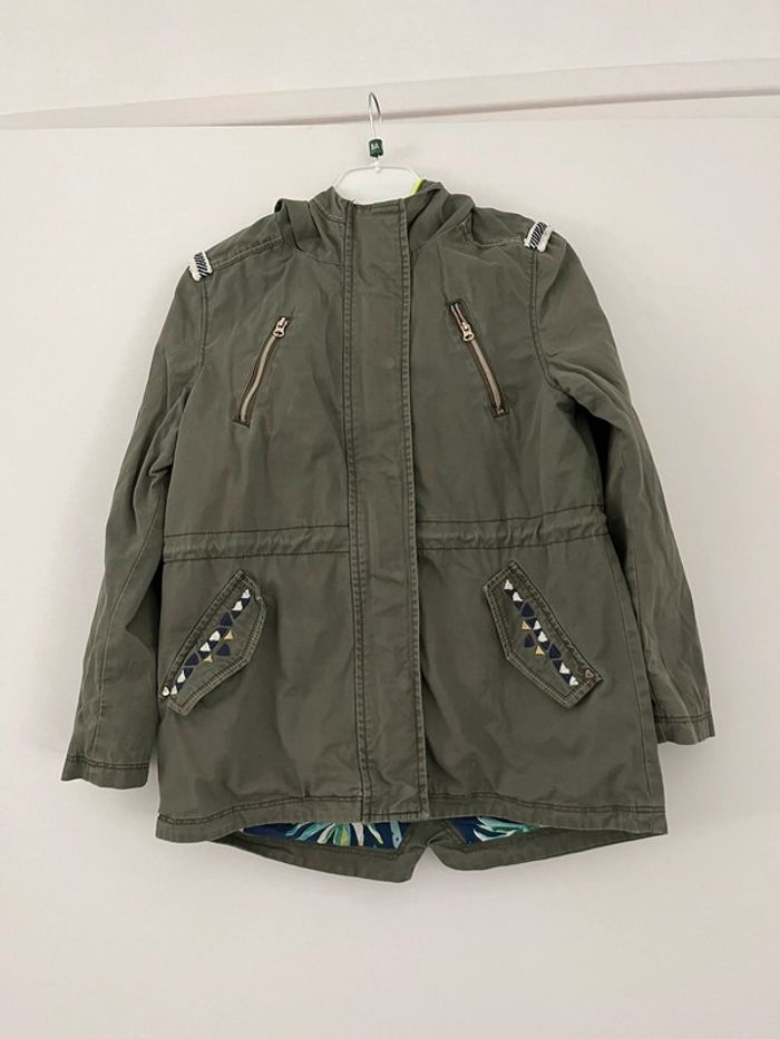 Imperméable à capuche, mi-saison, Ferme avec fermeture éclair et pressions Porté mais reste en bon état , un petit trait blanc sous fermeture éclair côté droit #juvignymaryseenfantsfille8ans